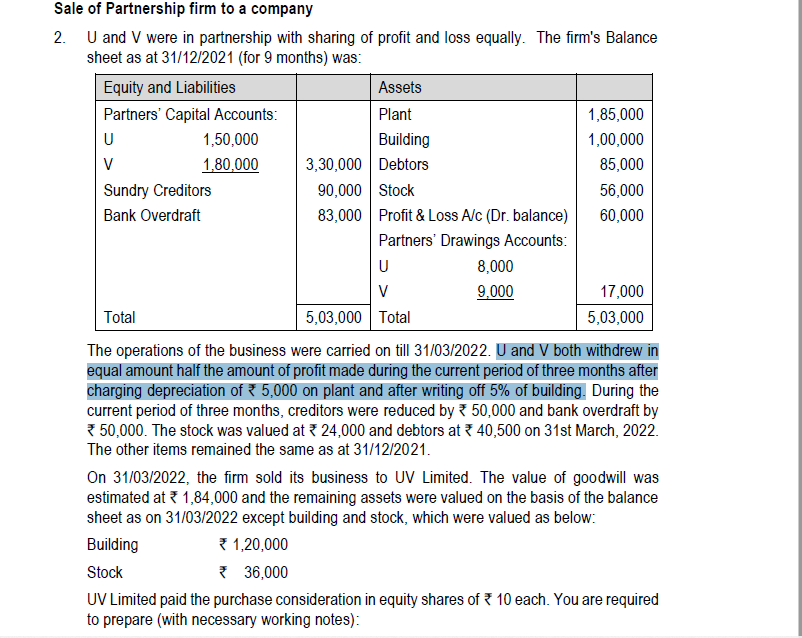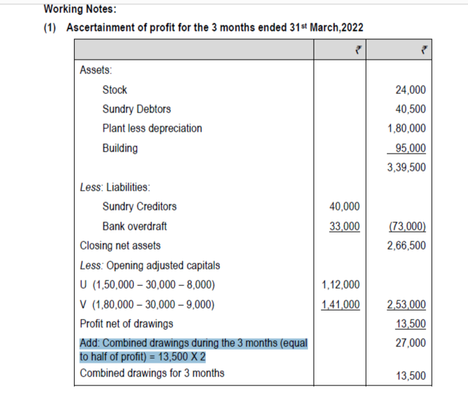 How is amount of combined drawings arrived at? shouldnt it be Half of profits earning during the period =13500 /2 = 6750 ?