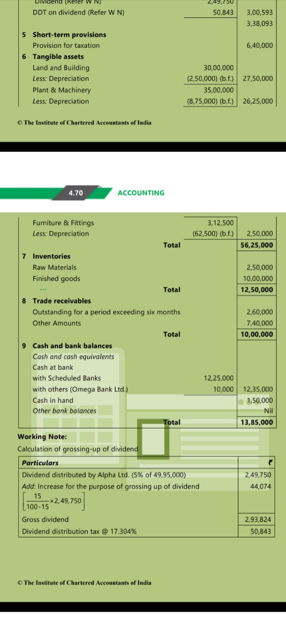 The attached image is the NOTES TO ACCOUNTS of Qn. No. 4 of Practical questions of chapter-4 of paper 1 Here no information is given in question regarding, "Increase for the purpose of grossing up of dividend" And "Dividend distribution tax and it's rate" Why these are done there?? Can u please explain that working note??