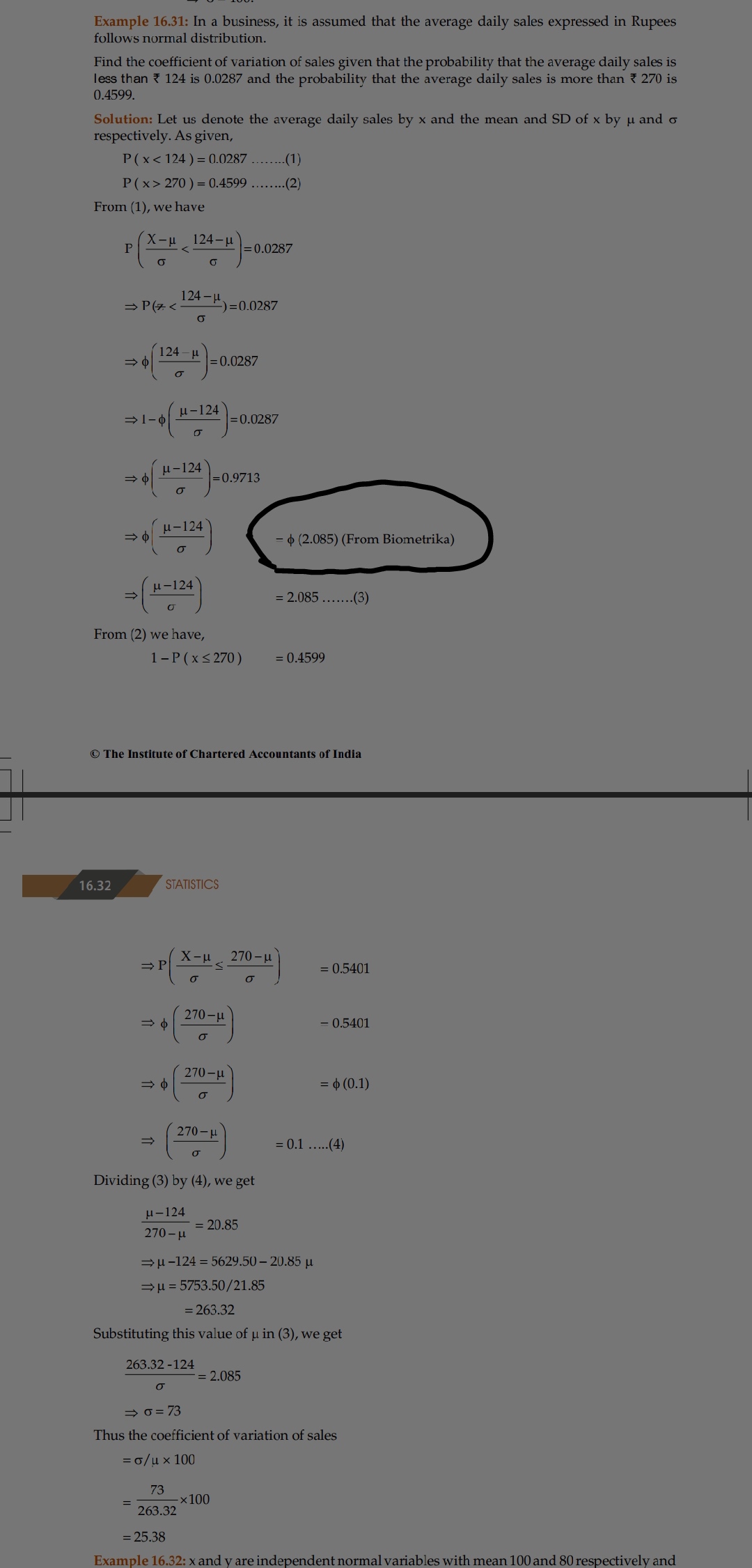 Please check whether the answer given is correct or wrong. Because I get the biometrika value for 0.9713 as chi(1.9) from the biometrika table.