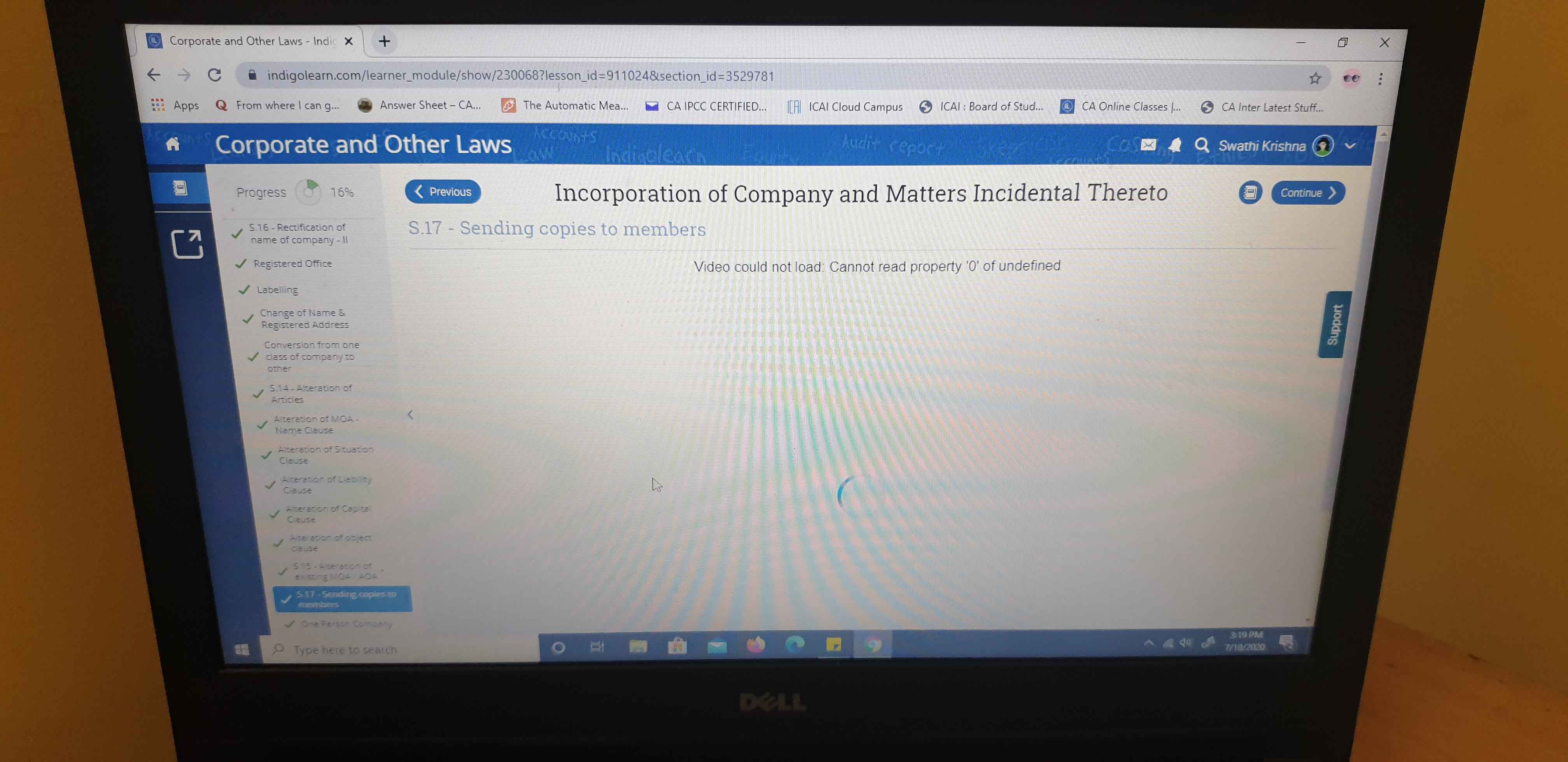 I had purchased law subject . In that,chapter 2 incorporation of companies, section 17 is not loading (in the pic, it is given)