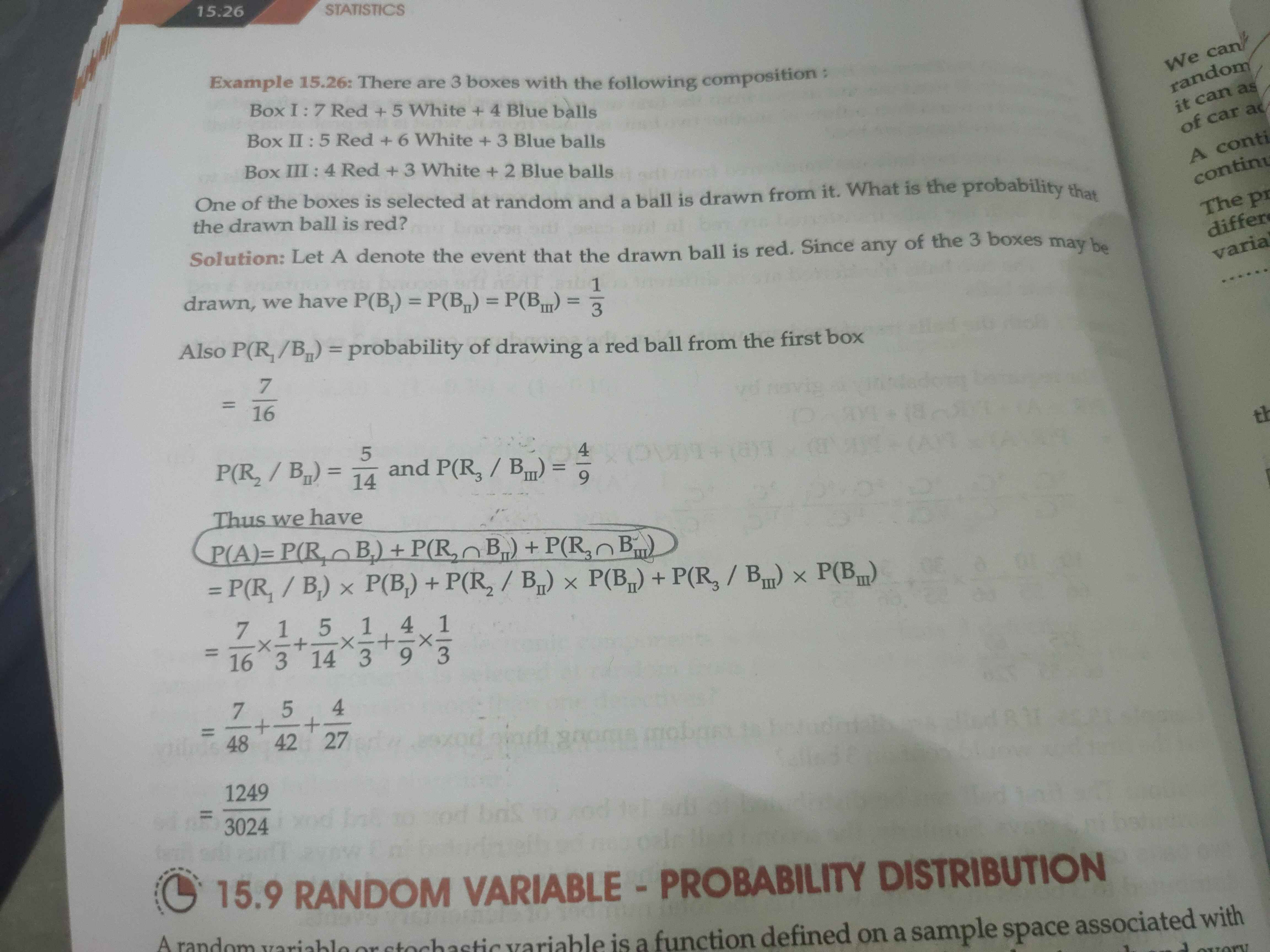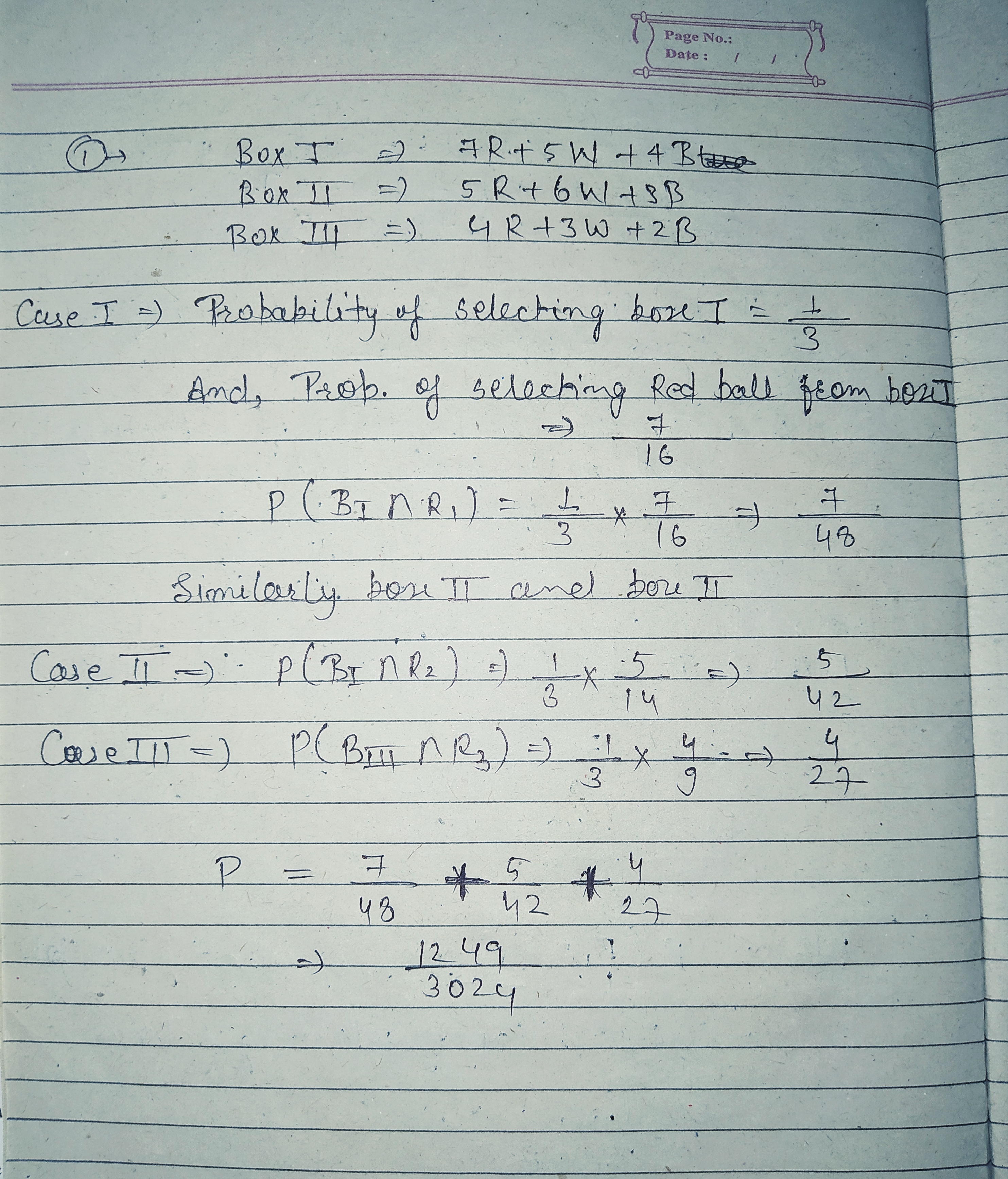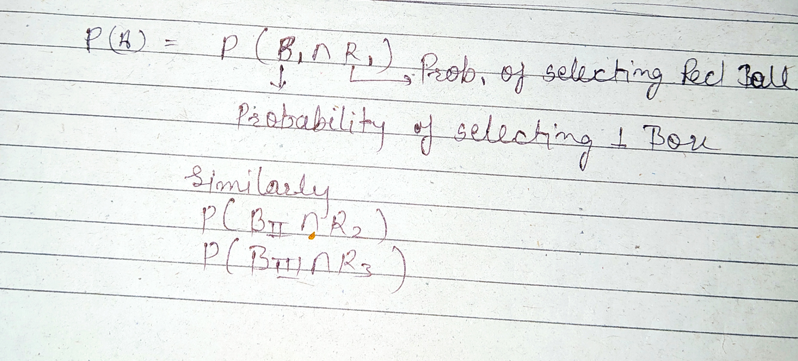 Can you show it with Venn diagram so as to get clarity. It is given as we have 3 box and selecting them is 1/3 and then we have conditional probability saying that selection of red ball provided that it is from 1st box and we need to calculate for 3 different boxes. From the above 2 representation i.e., one is P(R/B1)*P(B1) similarly for other boxes we get to know that is intersection itself right?
