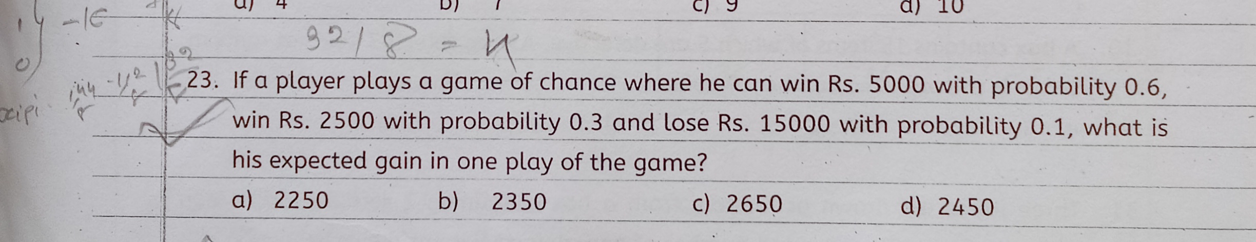 Expected value = Sum ( probabilty z x win a + prob b x winb - probab c x lose c)