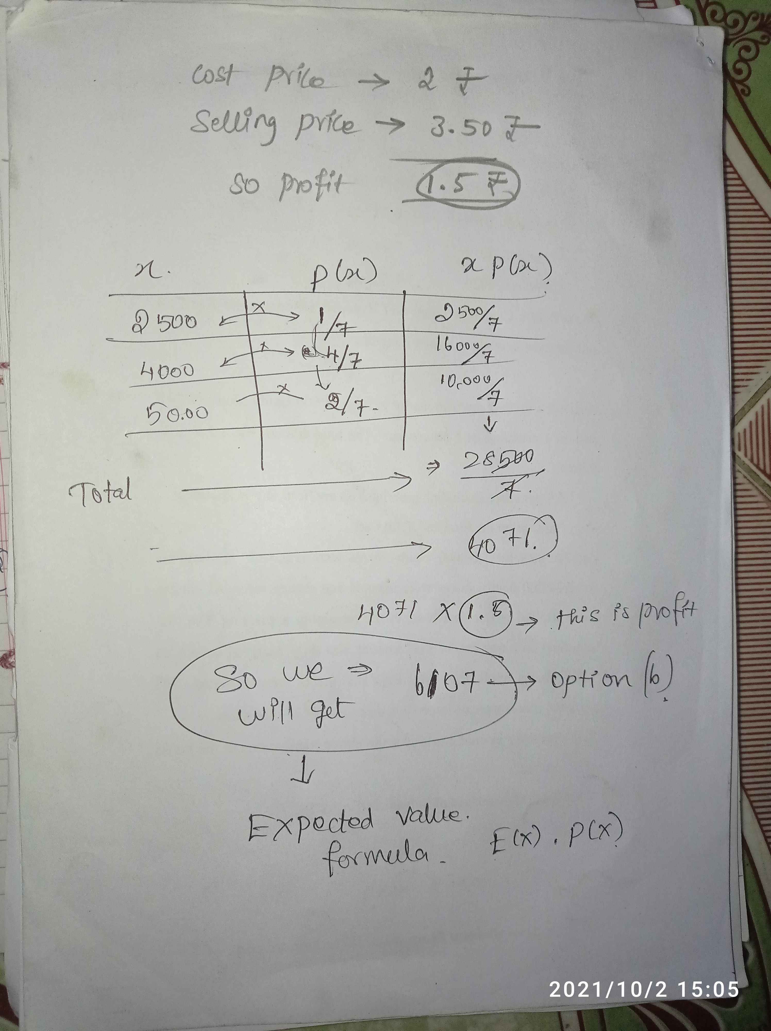 for mild profit is 2500 x 1/7 x 1.5 so on a so forth have you solved like that?