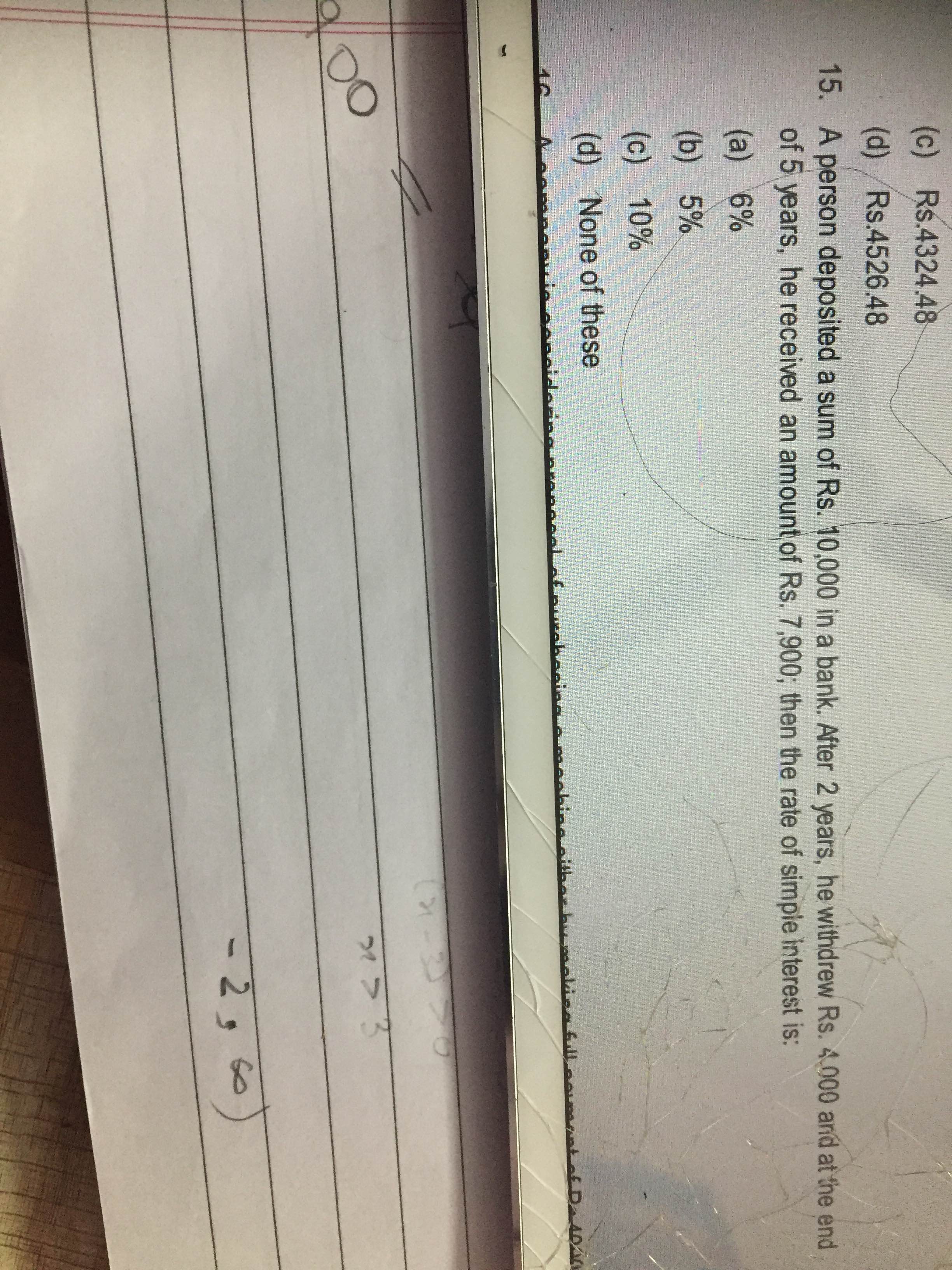 4000 x r% x 2 + 6000 x r% x 5 + 6000 = 7900 38000 x r% = 1900 r% = 1900/38000 r = 5